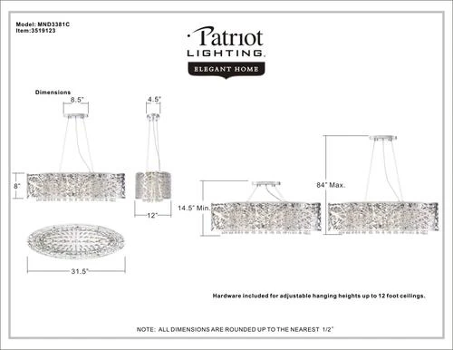 - Hardware included for adjustable hanging heights up to 12 foot ceilings