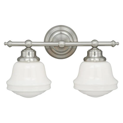 The Huntley is a timeless collection inspired by mid-century small-town aesthetics. The vintage school house glass is the focal point of this design with its unique profile and glass options. Offered in multiple finishes and glass options, this versatile farmhouse light will provide a unique accent to a variety of kitchen, dining, and bathroom settings. Medium screw base lamping provides maximum light output. The complete collection includes chandeliers, pendants, semi-flush ceiling lights, and 1, 2 3, and 4 light bathroom vanities.