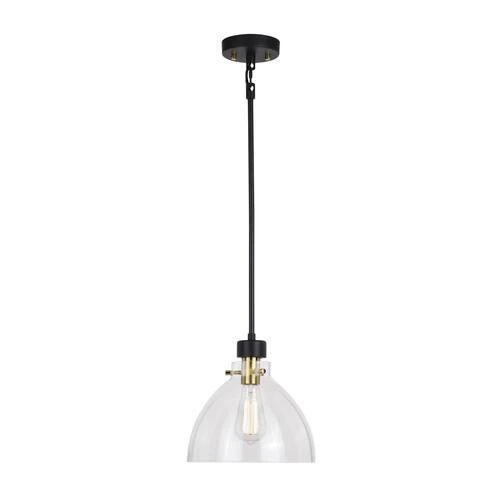 The uncomplicated appeal of the Patriot Lighting® Kenzie collection is unlike any other. The modern and trendy matte black finish with gold accents together with the clear glass updates your home’s decor instantly. Add this pendant to any kitchen, dining room, or living space for the perfect look. Don’t wait any longer, give the Kenzie collection a try and you’ll be delighted by the results.
