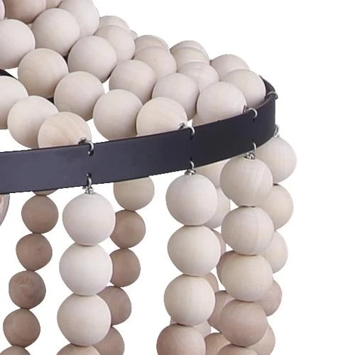 - Rich matte black finish with draped bleached look wooden bead accents