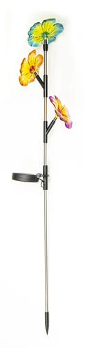 | Includes | Solar Panel, AAA Ni-Mh Battery, Steel Stake Construction, 3 Color Flower Heads: Orange/Yellow,Purple/Yellow, and Blue/Yellow |