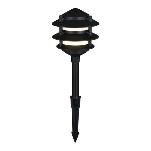 This Patriot Lighting Low Voltage LED Path Light is safer and less expensive than traditional 120 volt lighting. It can be installed almost anywhere within reach of a power supply and uses minimal home energy to create bright, soft light. With an aluminum construction black finish and a frosted lens, this path light offers energy efficient, durable long lasting light. The path light uses tiers and shades to direct the light downward and minimize glare making it ideal for lighting walks and steps.
