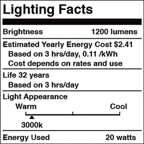 - This LED light has a CRI of 80, a color temperature of 3000K (Warm), and is 1200 lumens