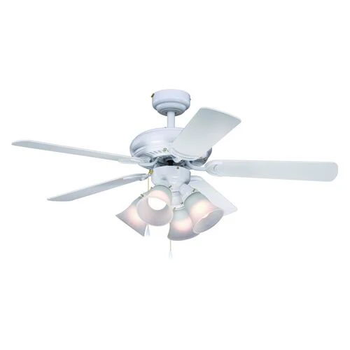 The Patriot Lighting Minerva II 44-inch transitional white ceiling fan has a classic beauty that will look great with any decor. This ceiling fan is perfect for a living room or bedroom and has a simple three-speed pull chain control that allows you to control the lighting and fan speed quickly and easily. The reversible, whisper-quiet three-speed motor provides upward and downward airflow for desired air circulation and year-round comfort.