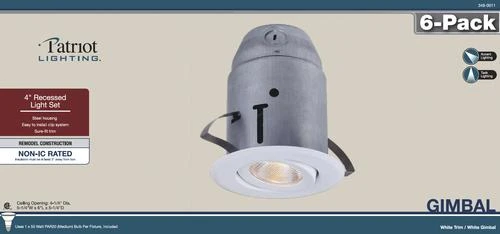 - Includes (6) x Par 20 Bulbs; (6) Gimbal Trim, (6) Non-IC Rated Housing and Junction Box