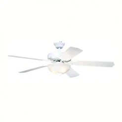 The classic look of this Patriot Lighting Apollo II 52-inch ceiling fan comes from its white finish and alabaster glass fan light. It has five reversible white and washed oak fan blades and is controlled by a conveniently included remote control. The reversible, whisper-quiet three-speed motor provides upward and downward airflow for desired air circulation and year-round comfort.