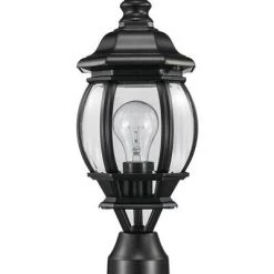 The Ellie 17-inch post lantern adds charming character to your home’s exterior. This one-light lantern sets a warm and inviting tone for an outdoor living area while providing ample lighting. This traditional fixture features an octagon shape lantern with an ornamental finial detail at the top. The clear glass sections are surrounded by a sturdy housing and decorative frame.