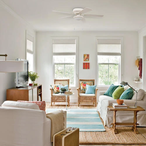 The Patriot Lighting Gilford 52-inch ceiling fan is ideal for rooms with limited ceiling height. This fan’s design allows it to fit into rooms with different decor. The reversible white and maple blades allow the fan to blend in with the ceiling or provide some contrast.