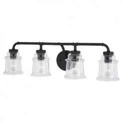 Clean retro lines define this beautiful collection called Toledo. Notes of industrial and farmhouse tradition are defined with the elegance of clear blown glass. Combine that with a vintage Edison style filament bulb to complete the look. Versatile reversible mounting option lets you install this fixture up or down. This bathroom light is perfect over large or double vanities where there is only one outlet box.
