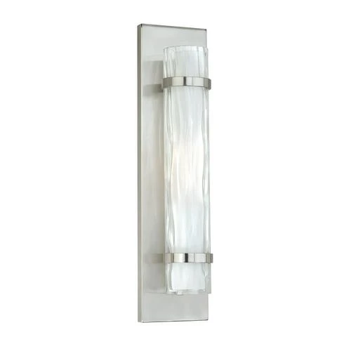 The Astoria wall sconce is a perfect blending of simplicity and sophistication. Flat planes and bands of satin nickel are a striking compliment to the more softly defined columns of water glass. Ample light emanates from the vertical glass shades creating a dramatic effect. These wall mounted fixture offer a classy touch to any contemporary space of the home.