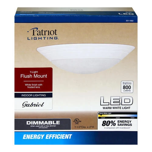 The classic design of the LED Gabriel 7-1/2-inch white ceiling light fixture fits anywhere and is easy to install, making it ideal for a closet, garage, or hallway light. The LED light uses only 12 watts, providing 800 lumens of light lasting over 50,000 hours without ever replacing a light bulb.