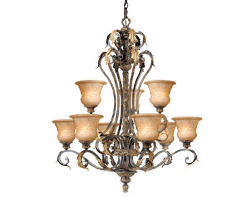 The Patriot Lighting® Monaco nine-light chandelier is the epitome of taste and style. This chandelier can update the style of any room to create a truly unique look. The Peruvian patina finish and laurel glass combined with the natural elements was design to be a great addition to any décor.