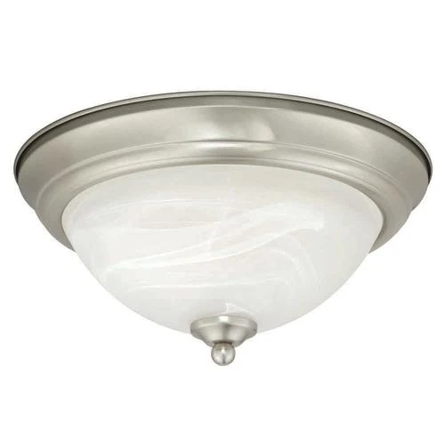 The Patriot Lighting® Payton twin-pack 13-inch dimmable LED ceiling light features a satin nickel finish with alabaster glass shade. Each flush mount light includes a 120-volt residential driver and uses 19-1/2 watts of electricity but produces 1,140 lumens with a color temperature of 3,000 kelvin, which is equivalent to a 100-watt incandescent bulb, to save energy. The fixture is dimmable to provide the dimming range from 100% of full illumination to 20% of full illumination. Its easy installation and transitional design is a great additional fixture to fit any room.