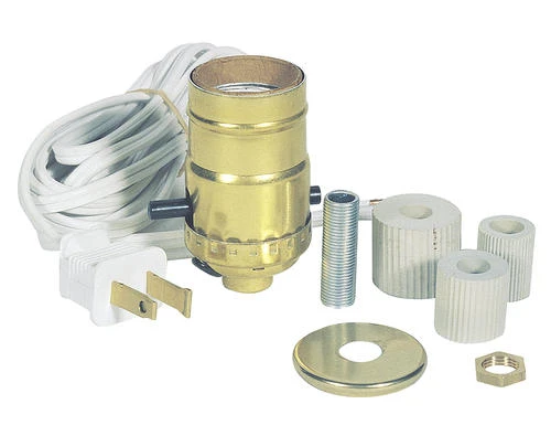 Convert any bottle into a lamp with this make-a-lamp kit. It includes an 8′ 18-gauge cord set, a push-through socket and bottle adapters.