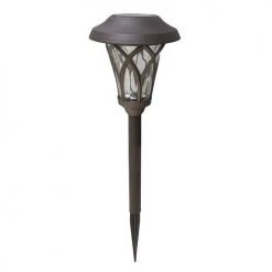 This set of four solar Tioga path lights is sure to enhance any garden setting. This path light features energy-efficient LEDs that are powered by the sun’s rays and are the perfect accent for your flower bed, garden pathway, or driveway. This path light utilizes an amorphous solar panel and a high performance warm white LED bulb that generates 4.8 lumens of light. The built-in rechargeable battery allows the light to automatically turn on at dusk for up to eight hours of nighttime illumination. Place this light in a sunny location for maximum performance. This path light features easy installation with no wiring required.