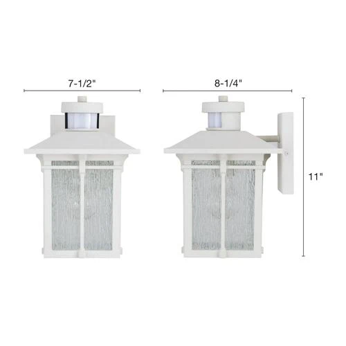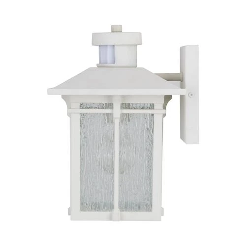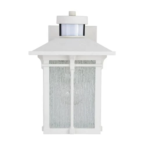 The Patriot Lighting® Wren wall light is both intriguing and stylish. The white finish and clear textured glass are paired together for the perfect look. This wall light is ideal for any entryway, garage, backyard, or any other exterior space where you would like a little extra light with a little extra flair. The built-in sensor allows you to have more control over when you’d like more or less light. Equipped with four modes, you’ll be sure to find the right one for you.