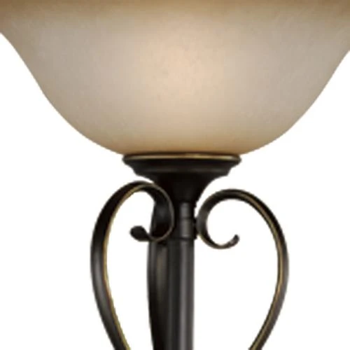 Light up your living room, family room, or office with this traditional-styled Patriot Lighting® Mavis 72″ H Oil-Brushed Bronze Contemporary 1-Light Floor Lamp. The steel torchiere lamp features a decorative base with an oil-brushed bronze finish and soft etched champagne glass shade. The light source is soft, and the illumination points upwards. If you’re in a room where light is a little harsh, relieve your eyes and save energy with a dimmable rotary switch. There is a dimmable rotary switch placed on the body of the pole, providing fine control over the light level in any room. This torchiere floor lamp is a perfect addition to your living space and ideal next to a chair or table for reading, sewing, doing homework, or similar activities.