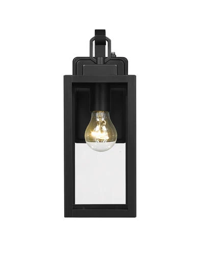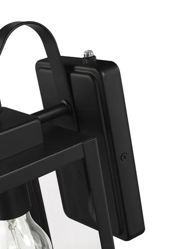 Blending a contemporary style with a rustic charm, the Patriot Lighting® Reanne Outdoor Wall Light is an easy way to softly illuminate your frontway, back door, garage, porch or patio. This elegant wall light embraces angles and square details, and features a hanging loop for a fresh, modern touch. Pairing clear glass with a matte black finish adds a subtle sophistication and a classic touch. With a built-in photo sensor, this fixture will turn on at dusk and off at dawn, so you don’t have it. Plus, the bottom opening makes it easy to change your lightbulb and create the perfect setting to charm your passers-by.