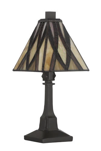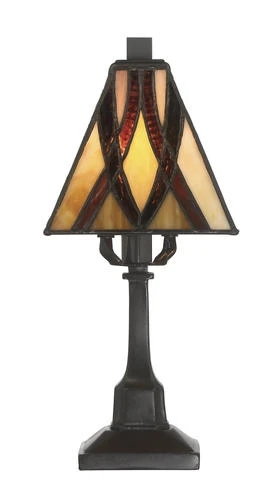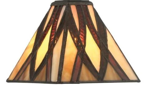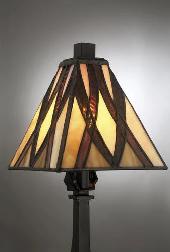 - Features a Tiffany glass shade with a vintage bronze finish