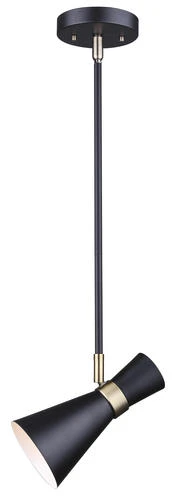 This modern 1-light Mini-pendant from the Patriot Lighting® Keilen collection features strong design elements and retro style shades. The adjustable shade in a black finish with antique brass accent will make a bold, contemporary statement in your home. Create a feeling of harmony throughout your home with additional coordinating Keilen light fixtures (sold separately).