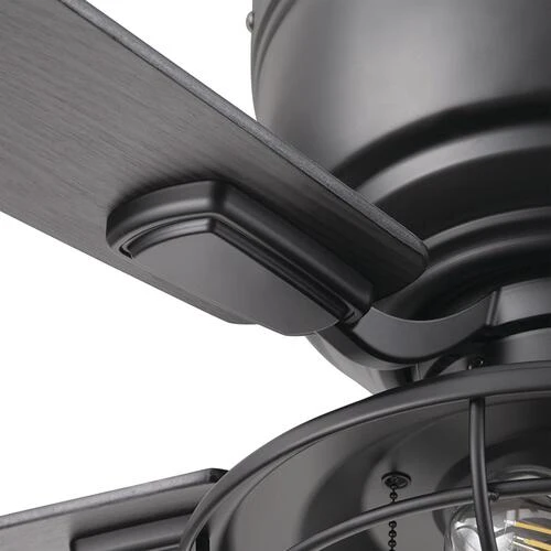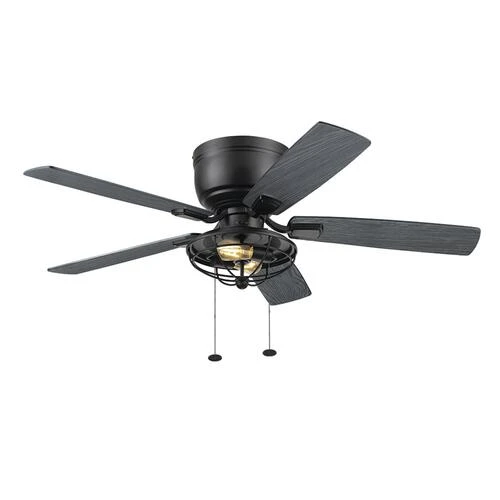 Patriot Lighting presents the 52 inch matte black Annetta hugger ceiling fan with reversible blades and metal cage. The Annetta fan has an indistrial design ideal for your large rooms indoors or on a covered porch. Two LED medium based clear bulbs provide adequate lighting for most applications for rooms with lower ceilings.