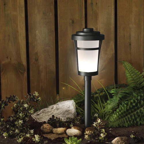 This Patriot Lighting® Low Voltage LED Path Light is safer and less expensive than traditional 120 volt lighting. It can be installed almost anywhere within reach of a power supply and uses minimal home energy to create bright, soft light. With an aluminum construction black finish and a frosted lens, this path light offers energy efficient, durable long lasting light. The path light uses tiers and shades to direct the light downward and minimize glare making it ideal for lighting walks and steps.