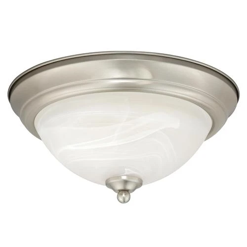 The Patriot Lighting® Payton 13-inch satin nickel dimmable LED flush mount ceiling light with alabaster glass shade coordinates well with any interior decor. It only uses 19-1/2 watts of electricity but produces 1,140 lumens with a color temperature of 3,000 kelvin, which is equivalent to 100-watt incandescent bulb, to save energy. This flush mount ceiling light is dimmable to provide the dimming range from 100% of full illumination to 20% of full illumination. With easy installation it’s a great additional fixture to any room.