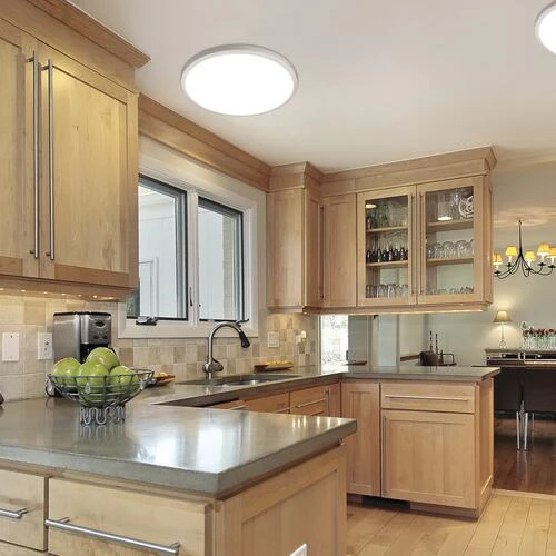 The Patriot Lighting 19 inch round flat panel ceiling light gets you the right light for any situation, with switch-operated color temperature-changing technology. With the press of a button, you can transform your lighting from 2400 lumens of energetic 5000K (Daylight) color temperature for your office or workspace, all the way down to a cozy 2700K (Warm White) for your bedroom or den. With five color temperatures (5000K, 4000K, 3500K, 3000K, 2700K) and dimmability using listed TRIAC dimmer switches, you get to set the mood in the room exactly to your taste. Specifically designed to be low profile and easy to install, this flush mount light is an excellent choice for any room in the house. Energy-efficient LEDs use a fraction of the electricity of traditional incandescent lights. With integrated LEDs rated for 50,000 hours, there are no bulbs to change for maintenance-free use for years to come. This product is also backed by a five-year limited warranty so you can buy with confidence.