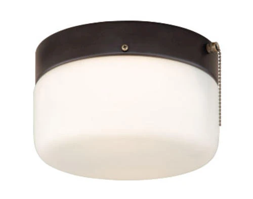 This Patriot Lighting® Drum 8-1/4-inch flush mount light with pull chain will brighten any room with a contemporary glass shade and bronze finish. This model is made of formed steel with a frosted opal glass shade and bronze finish for a contemporary touch. For indoor ceiling mount applications, this model adds light to any room in your house.