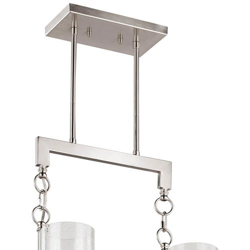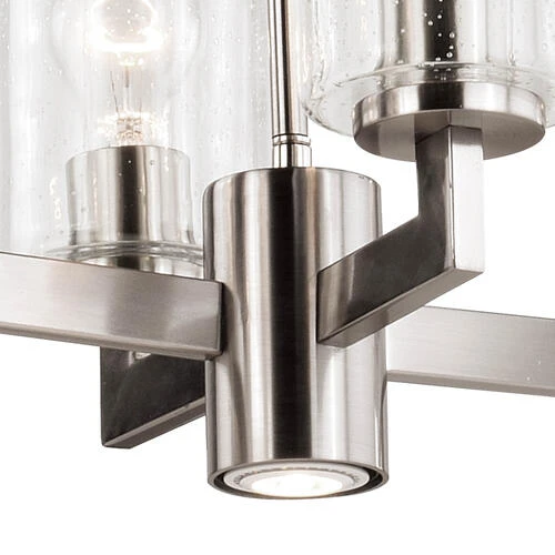 The Addison collection is a sleek, modern approach to lighting with a friendly flair. Flat metal arms finished in satin nickel partnered with cylinders of clear seeded glass bring high style and warmth to any interior space. Whether in your foyer, living or dining space, this collection is exclusively designed with your lighting needs in mind. This eight light chandelier includes a 3-way switch to control up and down lighting to customize your light settings for tasks and fun. Combine that with a vintage Edison style filament bulb to complete the look.