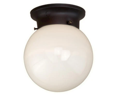 This Patriot Lighting® Globe six-inch bronze flush mount light is suitable for a variety of spaces. The flush mount light requires one incandescent bulb to illuminate the room with warm light.