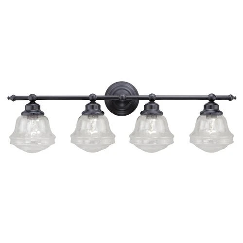 The Huntley is a timeless collection inspired by mid-century small-town aesthetics. The vintage school house glass is the focal point of this design with its unique profile and glass options. Offered in multiple finishes and glass options, this versatile farmhouse light will provide a unique accent to a variety of kitchen, dining, and bathroom settings. Medium screw base lamping provides maximum light output. The complete collection includes chandeliers, pendants, semi-flush ceiling lights, and 1, 2 3, and 4 light bathroom vanities.
