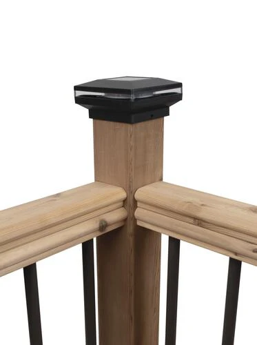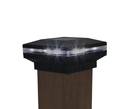 The Patriot Lighting® Lamar Solar Post Cap Light is a new and exciting post cap design; highlighted by a modern, sleek, low profile look. Featuring 8 soft white SMD LEDs located around the perimeter of the light (2 per side) and providing 15 lumens of light output, this post cap light will be sure to accentuate your fence or deck posts in your yard. Fits standard 4 inch wood posts and includes an adapter to fit standard 6 inch wood posts, is very easy to install and includes all mounting hardware. Place this light in a sunny location for optimal performance, as the solar panel uses the sun’s rays to charge the battery during the day. It automatically turns on at dusk for up to 8 hours of illumination.